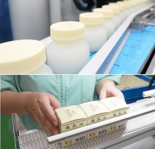 グループ内におけるすべての工程で馬油を仕上げる専用設備や器具を使用しています。一貫製造のもとで品質を管理し、完成までに2年以上の歳月をかけ、純度100%の国産馬油※を提供しています。