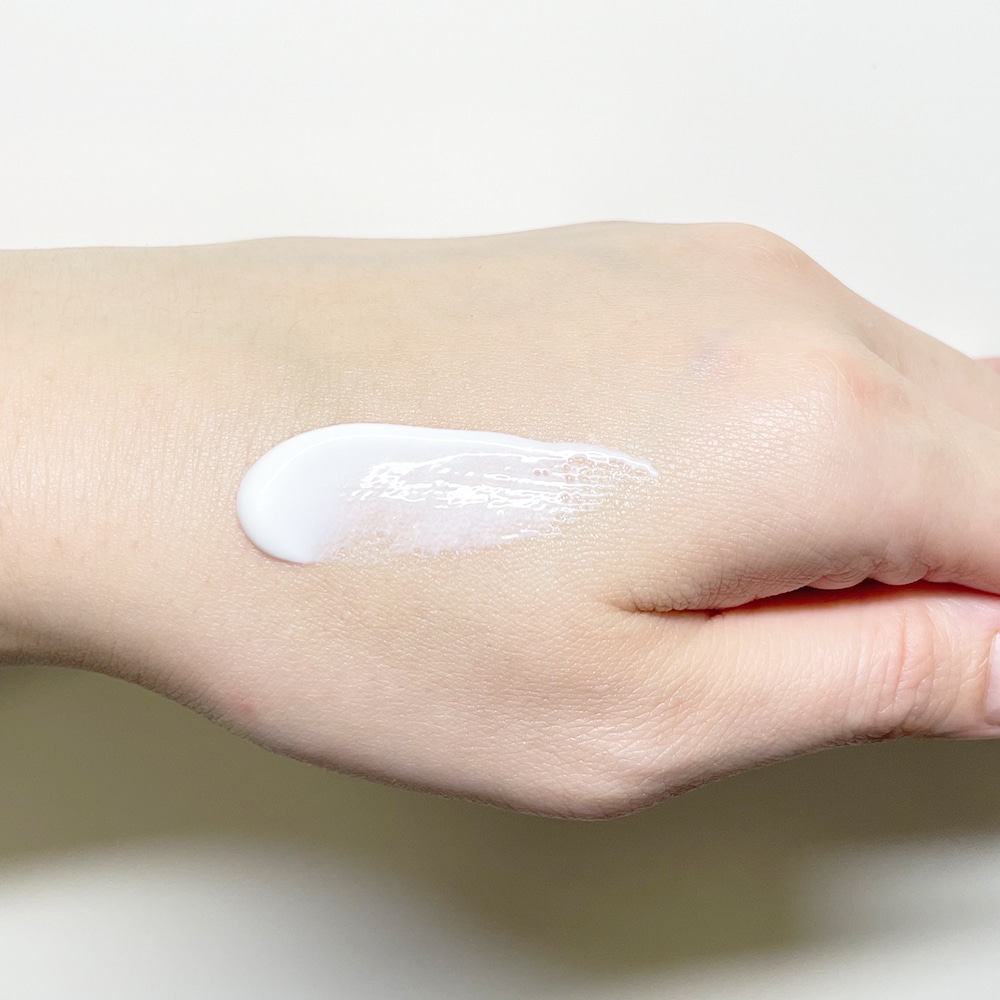全成分:水・酸化亜鉛・BG・スクワラン・パルミチン酸エチルヘキシル・グリセリン・ポリヒドロキシステアリン酸・馬油・ジメチコン・ペンチレングリコール・ベヘニルアルコール・酸化チタン・ポリメチルシルセスキオキサン(アクリロイルジメチルタウリンアンモニウム/VP)コポリマー・ホホバエステル・メチコン・水酸化AI・イソステアリン酸・シロキクラゲ多糖体・ヒドロキシプロピルメチルセルロースステアロキシエーテル・t-ブタノール・フェノキシエタノール