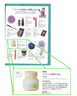 ハグマグ部活 はじめます!ビューティ部 冬のいち押しコスメ薬師堂ソンバーユ無香料 75mL¥2,000-----------------------------------玉木真里絵さん「わが家の万能クリームです! 馬油100%の無添加オイルなので、赤ちゃんにも使えます。お顔にも体にも使えるので、気になる乾燥部分に塗るだけでしっとり保湿してくれます。」薬師堂 0120-182-114 お知らせ一覧へ戻る